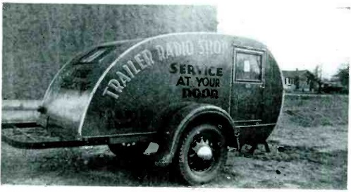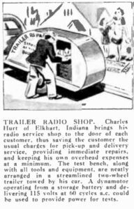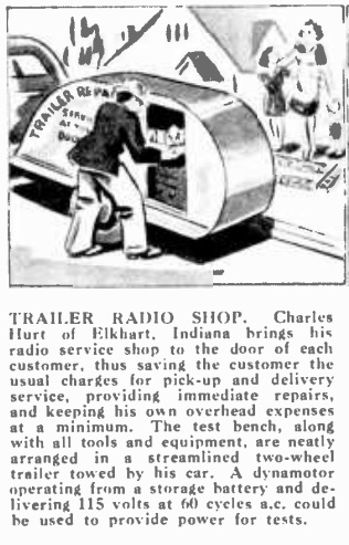 Hurt is also shown in this illustration in the December 1940 issue of National Radio News, which notes that the arrangement was also advantageous to the customer, as they avoided charges for pickup and delivery. This item also reveals that for AC power, the trailer was equipped with a dynamotor and storage battery.