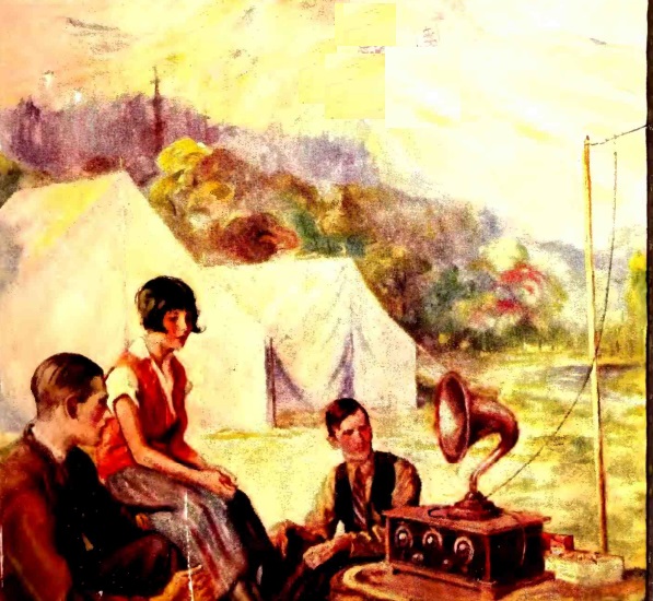 A hundred years ago, you could get back to nature, but still be connected to the outside world, thanks to the magic of radio. This group is pulling in a program from their campsite, and appear on the cover of Radio Broadcast magazine, August 1925.