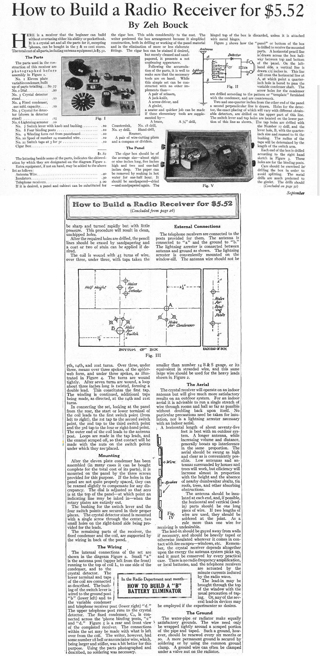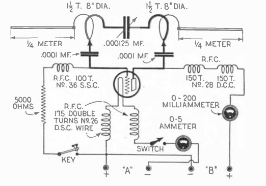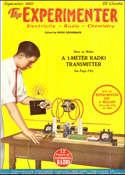 One hundred years ago, the amateur who really wanted to push the frontiers of radio communication might want to experiment with this one-meter (300 MHz) transmitter. It doesn’t appear that the set would be capable of much communication, since there’s no reference to a receiver. Reception is possible locally only with a wavemeter, and this cover photo from the September 1925 issue of The Experimenter shows the set lighting a lamp powered by a nearby resonant circuit.