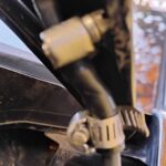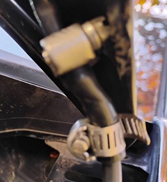 I could have lived with the leak near where the hood hinges, but we decided to fix that as well. Unlike the old tube I had found at the hardware store, the new one was just the right size and flexible enough to make a tight fit over the two pieces of original hose. The hose clamps probably weren’t necessary, but since I had them, I just put them back on.