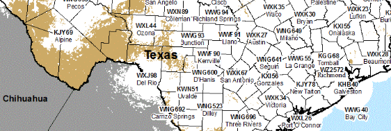 Unlike cell phone coverage, which can sometimes be spotty, the NOAA Weather Radio transmitters blanket most of the nation.  In the map above, white areas have coverage, and only the beige areas lack coverage.  In this case, transmitters in both San Antonio and Kerrville would have provided warnings.  You can find out if you have coverage at this interactive map.