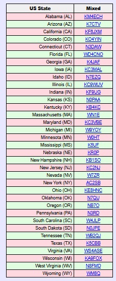On the left is a list of states that I have confirmed so far, and at the right is a typical display from PSK Reporter showing where my signal was being picked up from my home.