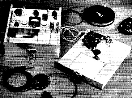 The superheterodyne receiver consisted of three tubes, a 1R5 converter, 1U4 regenerative detector, and another 1U4 audio amplifier to drive the headphones. It shared the transmitter’s tank circuit as the input of the receiver and used a crystal-controlled local oscillator. Tuning was done in the detector, with each crystal covering about 120 kHz.