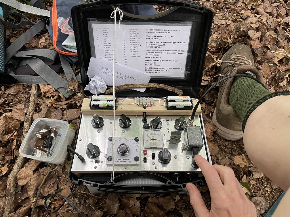 Unfortunately, we don’t have any photos of W6YBT operating his rig from a sleeping bag in the mountains, but we have even better! This year, 75 years after W6YBT first used the rig, Martin, G3EDM, was looking for a rig to take with him on a two-week 140 mile hike across England. And like W6YBT before him, going on vacation meant bringing along some kind of radio. According to an October 1993 article in 73 Magazine, W6YBT still just couldn’t leave ham radio at home, and eventually went solid state and got an MFJ-9020 QRP rig.